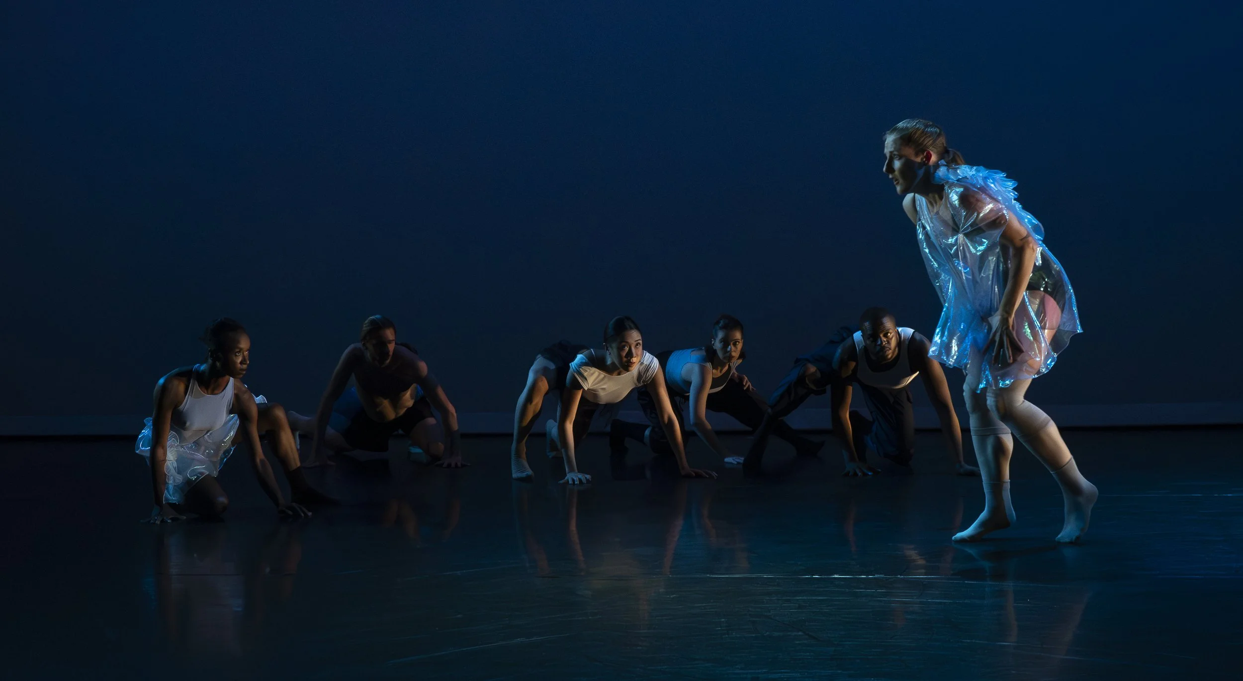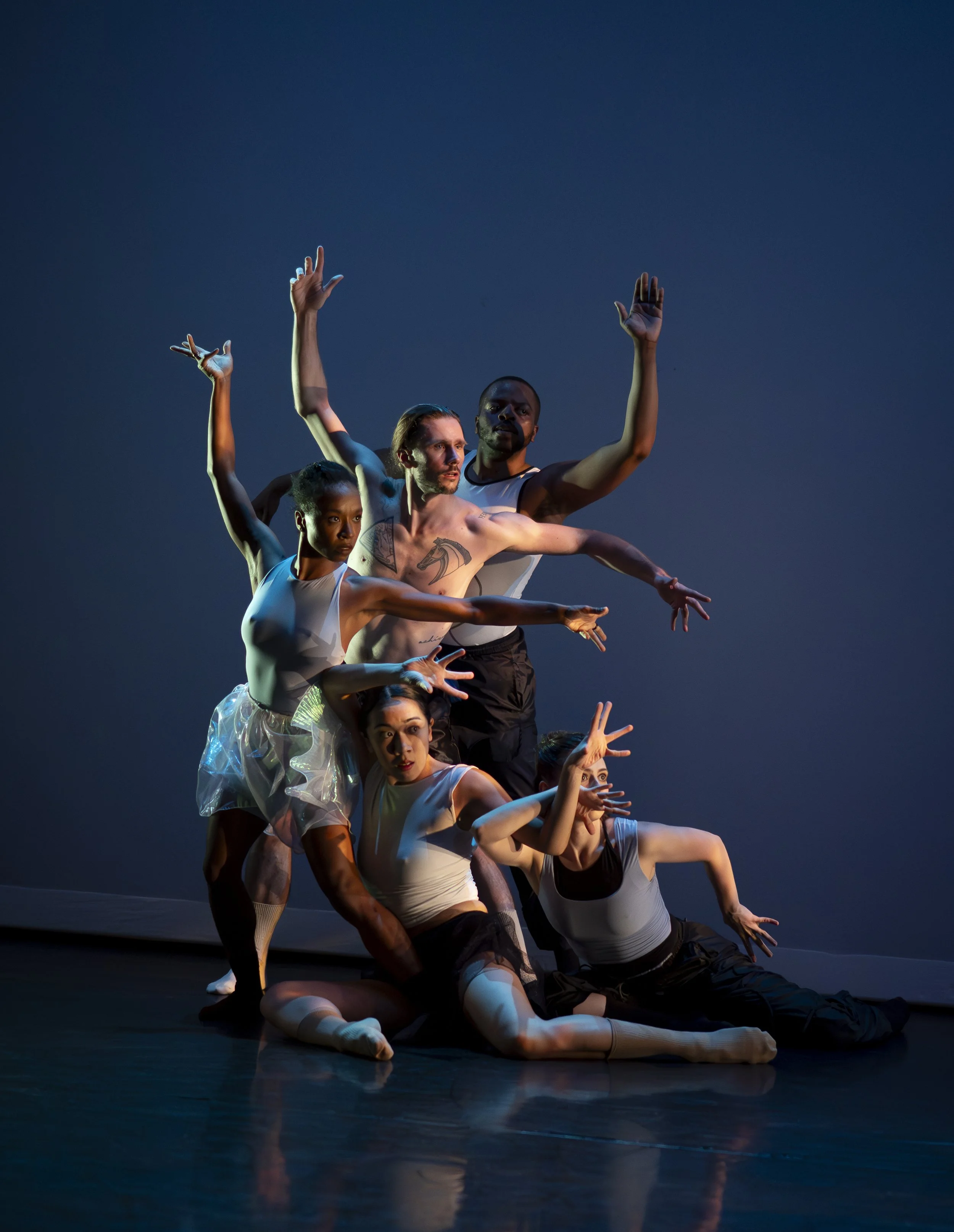 This work began as a concept for a photoshoot, exploring stark contrast and the sculptural qualities of the human form. From those images, we developed phrase work that evolved into the sweeping solo Carve the Night Swells.